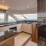 Perhaps the most eye-catching example of customization aboard the three was the piano on the 76. OK, it was an electric one—no one is going to demand a Steinway grand on a yacht this size—but it had a full-length keyboard and was concealed beneath what looked like a custom-built chart table close to the helm station. It was for the owner’s young daughter, so she could keep up her music practice during the summer vacation.