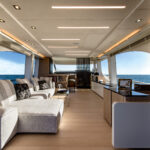 This year, to mark its first decade in business, MCY has debuted not one but three new models, or rather three “new generation” yachts built on the success of their predecessors. They retain the family identity so carefully created and developed by Nuvolari Lenard, while moving the game on—not just with the significantly larger windows but also with more emphasis on creating interior space.