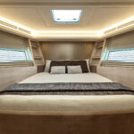 The new 66 sees a similar exercise in sleight of hand. The VIP berth is 5 inches narrower than in the old 65, and the berths in both the master and the guest cabin are a couple of inches shorter. They’re all still of perfectly practical proportions, but the increase in apparent floor area makes a disproportionate difference to the impression of size.