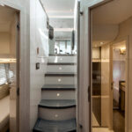 You can understand why the yard might be protective of its methods. It is remarkably efficient. Fiberglass moldings are built off-site in two plants. While that is going on, the MCY factory is hard at work building complete interiors in millimeter-precise steel jigs. Engines and tanks are installed in empty hulls. Entire, one-piece interior assemblies—two in the case of the their 105—are lowered into place in a matter of minutes. Apparently it takes four to six months to complete a 105 once the hull arrives at Monfalcone. With the smaller models it can be as few as two months.