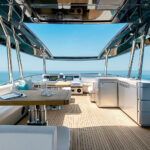 Climbing aboard the 70 felt like a definite step up. The lower helm is set well forward across from a large open-plan galley, which accentuates the length and beam of the salon seating area. The private aft companionway down to the master stateroom is a luxurious touch, and the standard lower-deck layout includes two good-sized twin-berth guest cabins.
