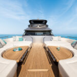 A celebratory summer launch of all three yachts on the waterfront at the Monfalcone shipyard gave me an opportunity to catch up with MCY’s thinking. The shipyard itself is one of the most impressive in the industry. The only other one I can recall where I wasn’t permitted to take photographs was fitting out a superyacht for Queen Noor of Jordan at the time.