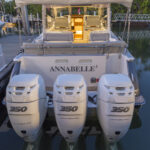 I find Hull No. 6 of the 43z in a slip underneath the Fenway-green Tobin Bridge. Boston beckons. Mercury Joystick Piloting allows the 43 to slide sideways from the dock before pirouetting. I aim the bow at Boston Harbor. The standard triple 350-hp Verados barely get spooled up to cruising rpm before the city skyline comes into view. The proximity to downtown Boston is staggering.
