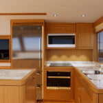 Owners will also have the option of a twin cabin crew area or a single crew cabin—both with a dedicated crew galley. Knowing that many Fleming owners are serious blue-water cruisers, I wager the single crew will be the more popular option.