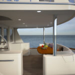 From the bow to the hydraulic swim platform, Fleming has raised the bar in the amount of onboard storage, yet another nod to the long-range clientele they typically attract. Huge storage lockers in the transom—and the space for a PWC on the swim platform speak to the adventurous owners who want to get intimate with the waters they’re going to be cruising.