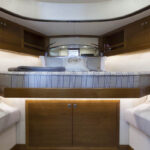 After a long day underway, drop the hook and spend some quality time relaxing in the cockpit. Plenty of seating and table space makes this a great place to entertain, whether it’s an intimate al fresco dinner or a casual cocktail.