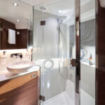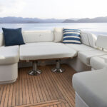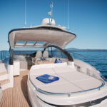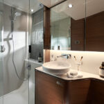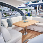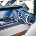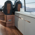The open version of this boat is understandably the more popular option on the other side of the pond where dayboating is the name of the game, and thus the open yacht on display in Cannes. This boat’s main deck sprawled back to the cockpit and held built-in settees with pleasingly curvy edges. That mini-settee labyrinth culminated in a sunpad for three. In the Americas, Nobel suspects an enclosed version of the V50—with sliding glass doors between salon and cockpit and more elegant furniture—will be more popular. That version will be on display at this year’s Fort Lauderdale boat show. Notably, both versions feature a large sunroof and electrically actuated windows to port and starboard, so with the sliding glass doors pushed to the side, the “enclosed” version can still function very much as an Open. I know which version would warrant my investment.