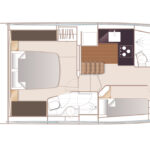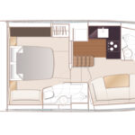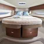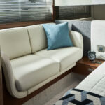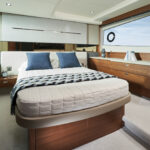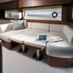 With twin 440-horsepower Volvo Penta IPS600s, this boat tops out at 32 knots and cruises from 26 to 28—an able clip for a fun time on the water, particularly when paired with twin Garmin screens and a 12-inch diameter wheel that promises racecar-like control. Princess models smaller than the V50 mostly come with stern drives, but the builder felt this boat was enough of a step up in class to warrant the bigger, more powerful, and more sophisticated engines. “There can be a stigma around outdrives in this segment of the market,” says James Nobel, marketing director for Princess Americas, in reference to some maintenance issues. “We’ve never had any trouble, but it just seemed to make more sense to us to go with the Volvos here, particularly when you account for the maneuverability and ease of use they offer.”