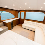 “It’s an upscale charter boat, with more of a boy’s layout—two bunk rooms and a small master. They wanted to overnight with anglers so it’s not necessarily set up as a family boat, though you could use it to island hop,” Caison says. “It’s rigged to fish.”