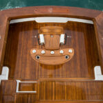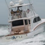The boat is run by Capt. Bryan Toney, and they added a tow bit to the bow so they can take it along with a mother ship to even more remote locales. It’s got a pair of 1150 C18 Cats and runs 38 knots on the pins. Caison had to make the boat no longer than 54 feet with a beam of 17 feet to fit the travel lift and slip in Kona.