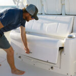 “There’s so many systems on this boat that if we didn’t have MyHelm, you’d be pepper-sprayed with switches here,” Clubbs said, pointing to the dash. “We want this boat to be easy to use.” To make things easier, there is a key fob that can turn off MyHelm as you leave the boat, or fire it up when you arrive. That means there’s only one button to push instead of going through the typical checklist before you leave the boat at the dock or find yourself at home hours later wondering if you remembered to shut off the courtesy lights.