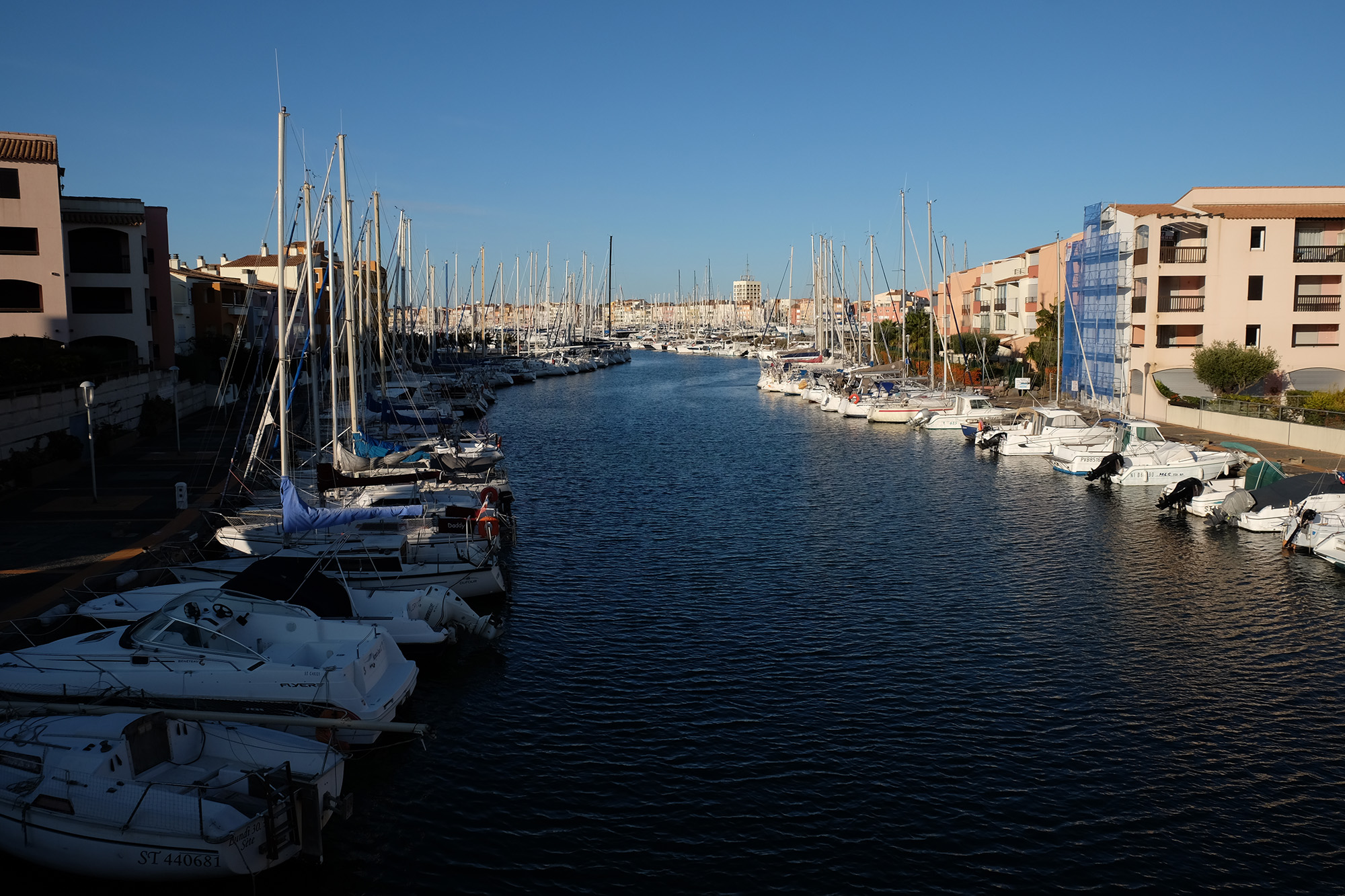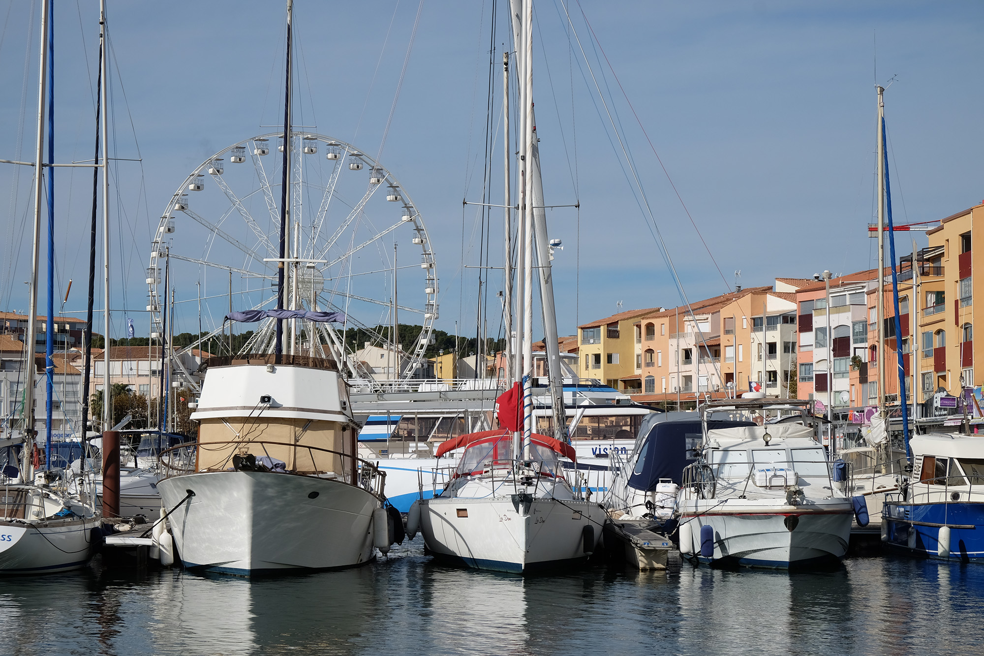 We were on board the C330V at its mooring in Cap d’Agde, which turned out to be one of those bizarre man-made marina resorts that sprang up along this stretch of coast in the 60s and 70s. In November it was very quiet, although the weather, of course, remained pleasant compared with the onset of the UK winter. The Ferris wheel stood idle against a blue Mediterranean sky, and here and there a hardy local sat in the sun outside a café with his newspaper and espresso. There’s a famous nudist beach just to the north, but it was way too chilly for that.