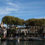 Just a few miles west of the Cap d’Agde breakwater lies the estuary of the River Hérault. From here you can navigate up to Agde itself, at the junction with the Canal du Midi, which cuts through south-western France and links the Atlantic Ocean with the Med. Long before the marina resort and the nudists arrived, this ancient town, with its black basalt cathedral and winding streets, was an inland port. Its well-known circular lock, 96 feet across with three sets of gates, is one of the wonders of the French waterways.