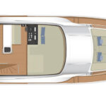 The 48 is offered with a choice of two engine installations, both on V-drive shafts. Our test boat had 550-horsepower Cummins, and if you want more power, you can have 670-horsepower Volvos. Sirena claims a maximum speed of 24 knots with the Cummins engines. We can’t argue with that, because the weather for our brief sea trial at the recent Cannes show was pretty atrocious and the only things on board reaching that sort of velocity were flying phones and coffee mugs. The optimum cruising speed is given as 16 knots.