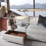 There are plenty of opportunities to customize the look of the interior, however. Walnut and two different oak finishes are offered for the veneers, varnished in either satin or gloss, while the flooring can be either walnut or light oak. If you prefer carpet to hardwood underfoot, there are six shades to choose from. Opt for the Allure style package and Princess’s Design Studio Collection includes various upgrades to the upholstery, teak detailing, paint finishes on the flybridge moldings, and exterior lighting.