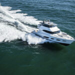 Three feet longer than the 68 in both overall and hull length, the 72 shares the same beam as her sibling. After all, both boats are from the same set of molds, but due to the extra length, the 72 is able to carry more fuel and water. It has different propulsion, too: Standard power for the 68 is a pair of 1,550-hp MAN V12 engines; the 72 gets 1,800-hp MAN V12s. However, both boats are available with the MAN V12 1,900-hp engines, a pair of which were in the 72 I tested.