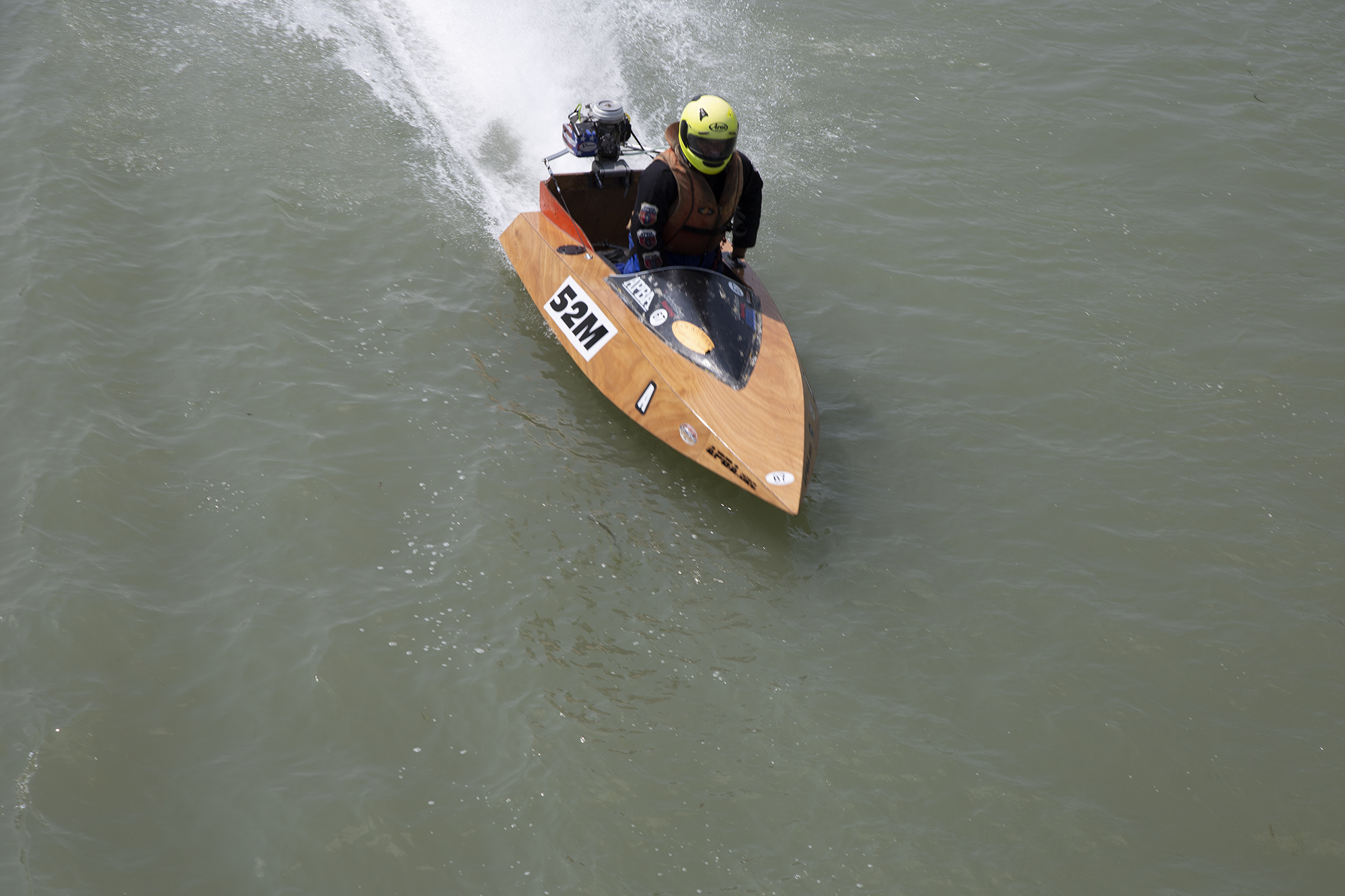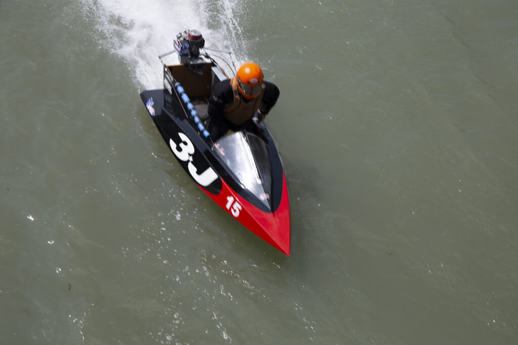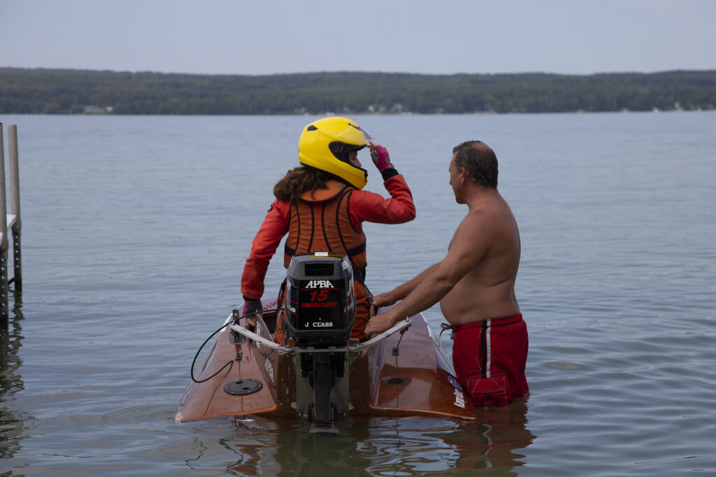 I’m already sore by the time I locate the pits and head in. “You did better than most,” says Bill, who got on the podium at the 2018 outboard stock Yamato hydroplane world championships in Poland. “Some people can’t even get onto plane their first time.” I rationalize his words of encouragement away: by “people,” I have a feeling he is referring to 9-year olds, the youngest possible age of entry that can race in the junior class. Still, the thrill of unadulterated speed is addictive. I ask if I can go for another joy ride.