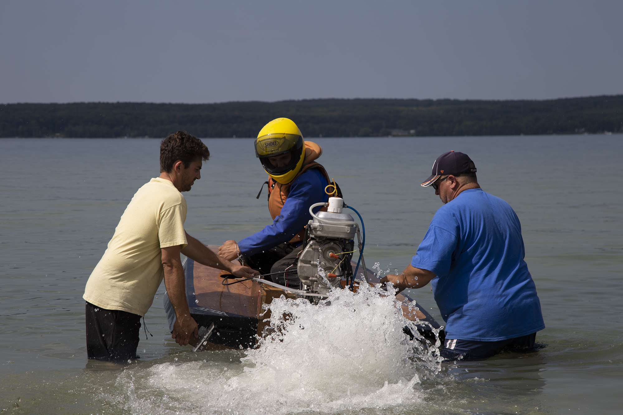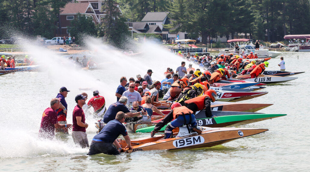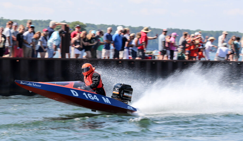 Ask any of the racers about the course, and most will speak about it with astonishment, vexation and loathing, but most of all with respect. At Top O’, drivers that typically compete in closed-course races—running multiple laps around an oval course—are forced to tussle with down-and-back racing across two lakes, Burt and Mullett. At 27 and 26 square miles respectively, they are among the largest inland lakes that dot Michigan, and they share a reputation for being unpredictable.