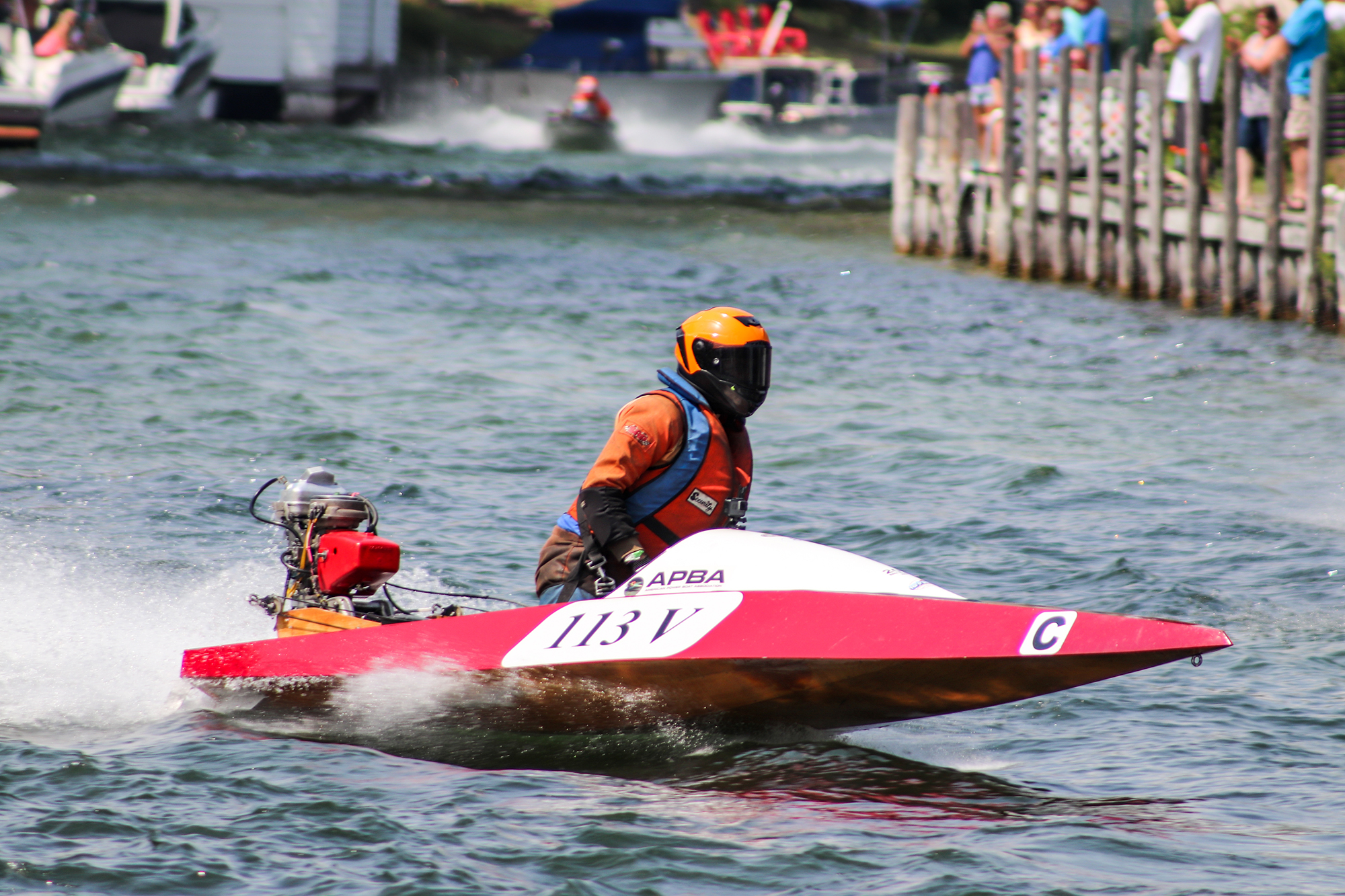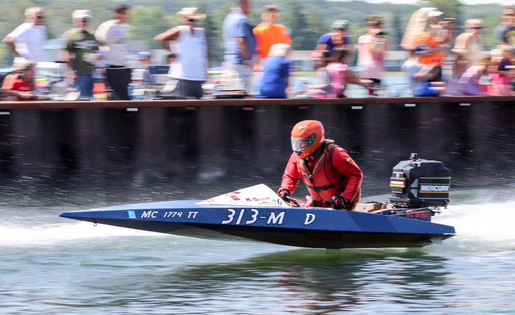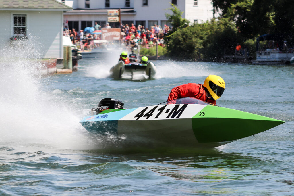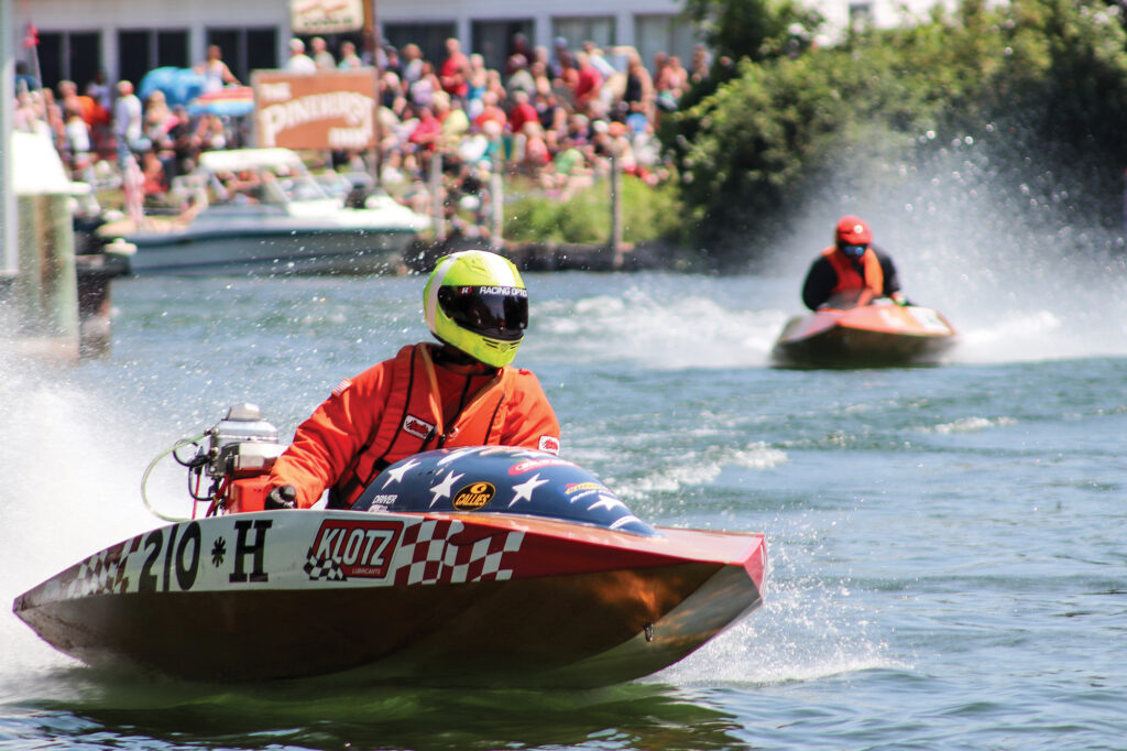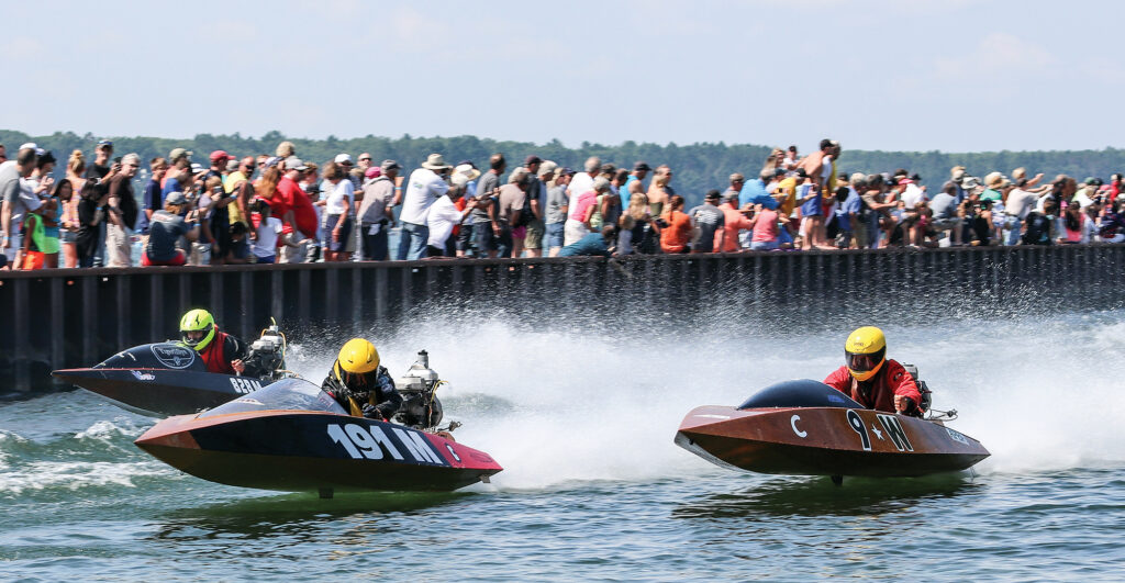 At Top O’—and other races around the world—it’s normal to see old school, two-stroke Mercury and Yamato engines hanging off transoms, as well as the modern, American-made Sidewinder. Regulated by the American Power Boat Association, this is a sport for gearheads. Out of the five classes competing, one still favors Mercury Mark 55H engines, which have been in use since the ’50s. Not only do they stoke nostalgia, but they still run great, too. Some classes require horsepower-controlling restrictor plates to keep things competitive; but the fastest classes allow drivers to open up these mini-powerhouses, with speeds in excess of 60 knots.