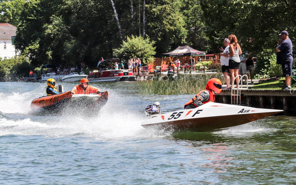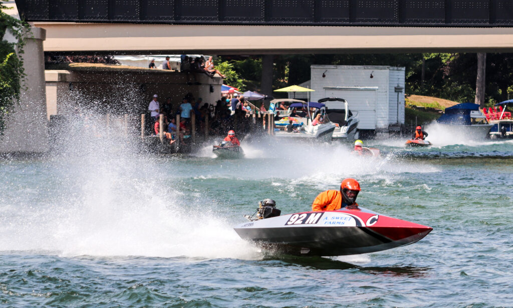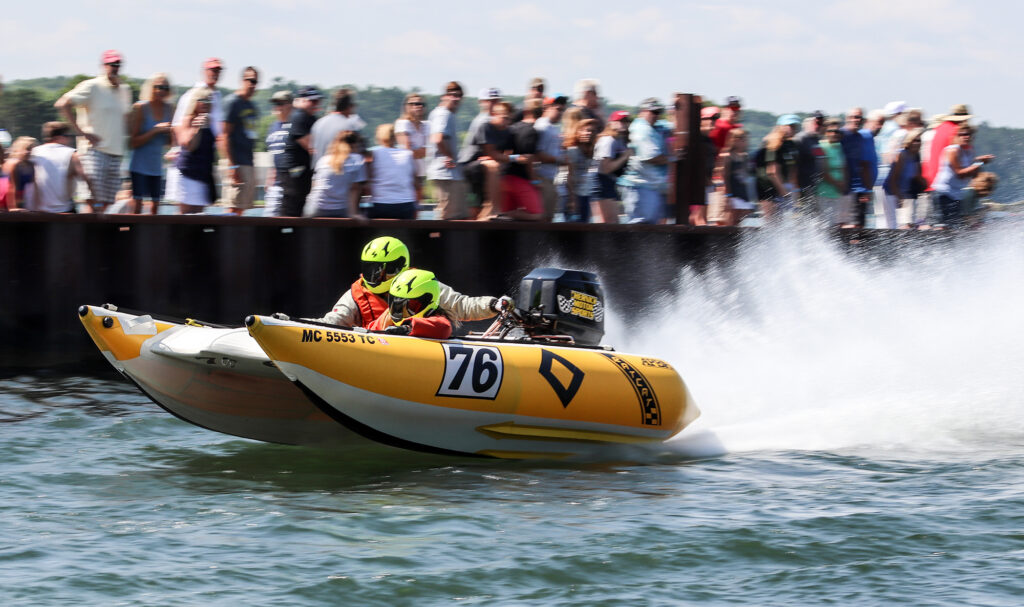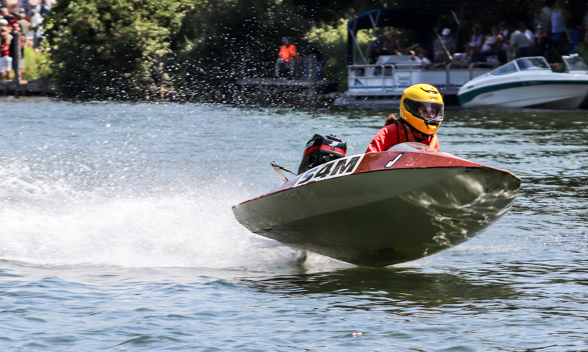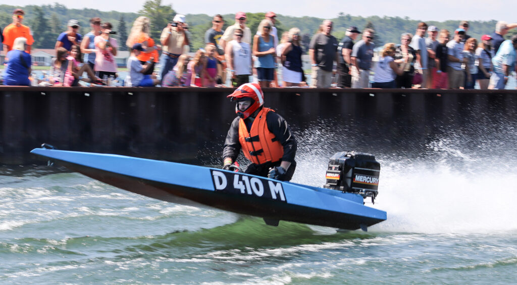 At Top O’—and other races around the world—it’s normal to see old school, two-stroke Mercury and Yamato engines hanging off transoms, as well as the modern, American-made Sidewinder. Regulated by the American Power Boat Association, this is a sport for gearheads. Out of the five classes competing, one still favors Mercury Mark 55H engines, which have been in use since the ’50s. Not only do they stoke nostalgia, but they still run great, too. Some classes require horsepower-controlling restrictor plates to keep things competitive; but the fastest classes allow drivers to open up these mini-powerhouses, with speeds in excess of 60 knots.