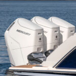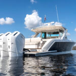 The glowing difference between this boat and what many would call a yacht, however, boiled down to the power plants. The 48 LS comes with only one engine option: triple 600-hp Mercury Verado outboards. You don’t typically think of outboard power when jumping into the yacht realm, but these new engines are going to change that. Tiara designed the 48 LS (which stands for luxury sport) around the innovative Mercury V-12s, and after a turn at the helm during an exclusive media event on Lake X in central Florida, I’d say it’s a happy marriage.