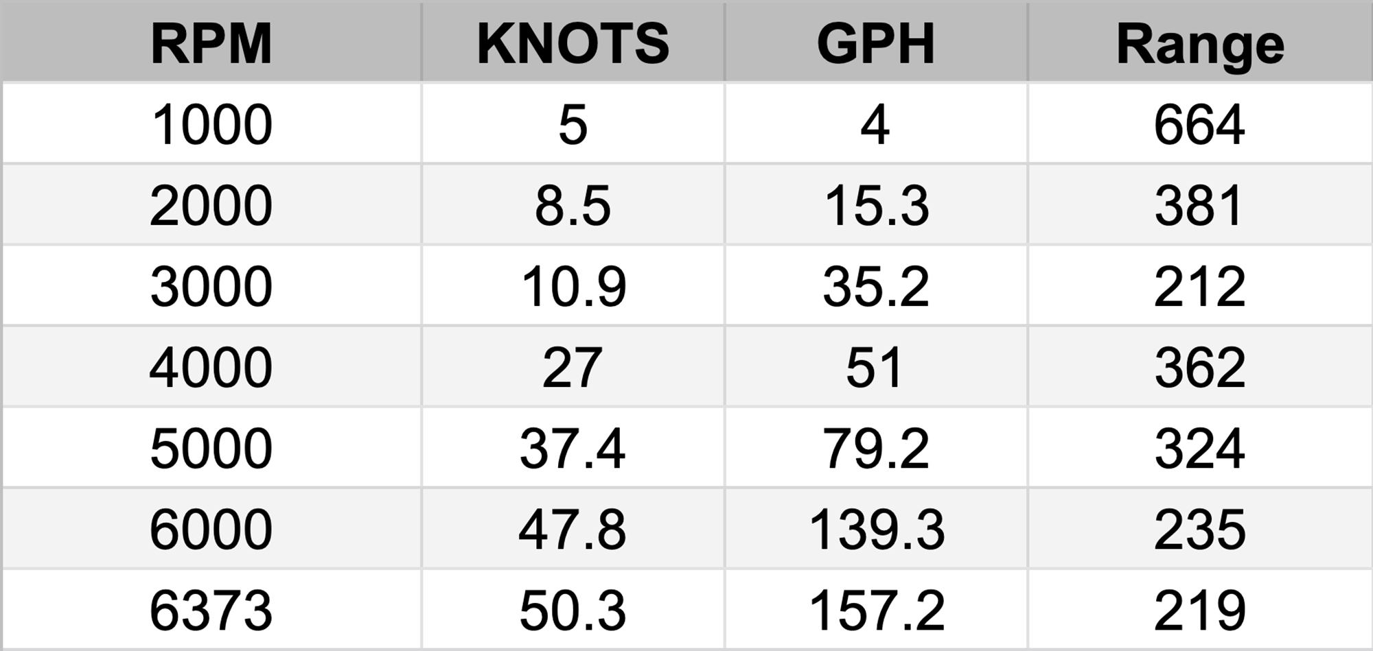 Since these V-12s kick out 600 hp apiece, you can get the same power as quad 450s in a triple configuration, without losing any performance—you actually gain performance thanks to the two-speed transmission. You do, however, gain some weight. Three 600s weigh 1,024 pounds more than quad 450s, but you don’t feel it when you hit the throttles, and you sure don’t hear it. They’re surprisingly quiet. The 48-footer hops out of the hole and goes zero to 26 knots in 9 seconds. The boat comfortably cruises at 33 knots, getting .6 mpg. At wide-open, the 48 LS hit a bit more than 50 knots.