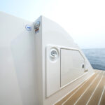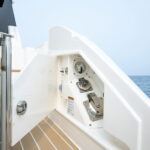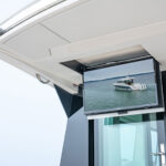 There are features to make the captain’s work easier. The opening window next to the helm station, for instance, allows the skipper to talk with crew on deck when they’re setting the hook in an anchorage.