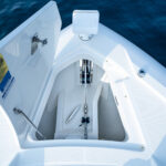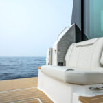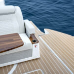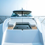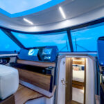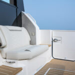 Press a button near the transom and the lounge turns to give passengers control of the view. If the kids are swimming behind the boat and you want to keep watch, spin the lounge 180 degrees until you’re facing aft. Or, if there are fireworks off to the port side, rotate the seat 90 degrees and enjoy the show without craning your neck. The rotating lounge has been a signature feature on Tiara cruisers for years, but this one takes the design to the next level.