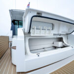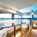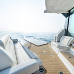 The cockpit is a comfortable place for boat-watching and just taking in the scenery. That includes passengers in the aft-facing seats against the bulkhead and those in the power-rotating lounge, which is the wow factor on the 48 LE.