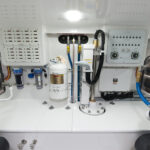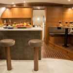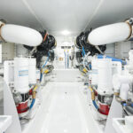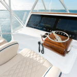 Another big-ticket item is the Dometic watermaker with Spot Zero, which filters out any hard water to alleviate water spots. “It’s really worth it,” Winters says. “It’s one of those things that give you the best chance to keep the boat looking brand new.” It also cuts down on time spent washing and polishing, and this hull really shines with a ceramic coating to maintain that fresh, just-out-of-the-yard look.