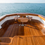 Boujie is powered by twin 1,925-hp Cat C32s. According to Winters, the 81,000-pound boat (91,000 pounds fully loaded) tops out at 43.8 knots at three-quarter load. She’ll cruise anywhere between 32 and 37 knots, burning 120 to 160 gph. The boat carries 1,640 gallons of fuel as well as quick-connects and pumps for an additional 400 gallons of fuel in bladders should you need it on one of those epic trips to the Caribbean or running down to Central America. And with twin Cat C2.2T generators rated at 27 kW, there should be no problem keeping the cabin cool and running all of the onboard systems.