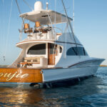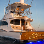 It’s hard not to stare when the latest from Winter Custom Yachts, a 63 sportfish, comes backing toward the dock. She’s a classic beauty, with clean lines, a smooth broken sheer, exquisite woodwork and plenty of power. But my eyes landed on the name emblazoned on the transom in an italic, cursive font. Boat names often reveal the owner’s occupation (Legal Eagle), angling passion (Reel Easy) or family tree (My Three Sons). This boat’s name tripped me up. Does that say Boujie? I thought to myself.