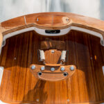 The hull for this boat was built using cold-molded construction, including three layers of marine-grade Okoume plywood encased in biaxial fiberglass and epoxy. Other than the hull and stringers, the rest of the vessel is made using composite materials to keep her light and strong.