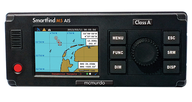 The McMurdo SmartFind M5 AIS Class A is a transponder that provides name and navigation data from other vessels and can be integrated with a variety of chartplotters and networked systems, including a PC system using the PC AIS viewer included with the unit.
