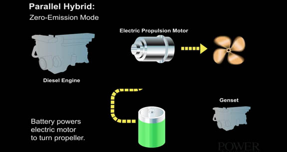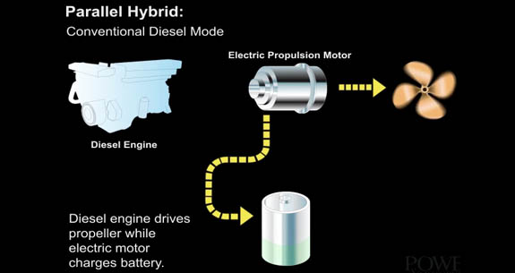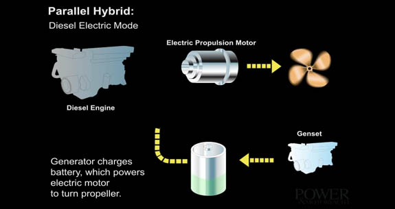 Animation of a parallel hybrid engine in conventional diesel mode.