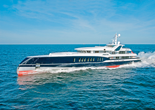 Predator | 238’8″ ( 54 ) At first glance Predator may seem like something out of a Jules Verne novel, but she is very real and very eye-catching. Her axe-bow design is actually a throwback to ships of the 1800’s, but by no means an exercise in nostalgia. According to Feadship, about six years ago it investigated the possibility of