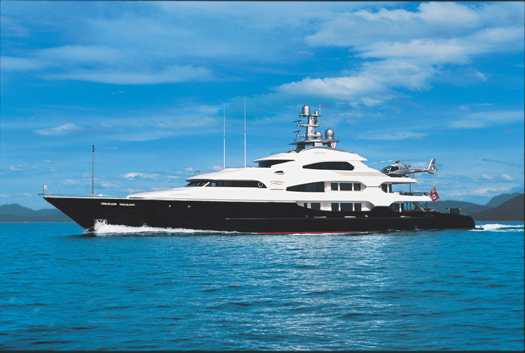Martha Ann | 229’6″ ( 67 ) ( tie )Martha Ann’s a globe-trotter of the first order. Since her launch in December 2007, she’s already made landfall in a host of palm-fringed ports in the Bahamas and western Caribbean. One of her most spottable attributes is her striking blue hull, a color not shared by sisterships Apoise (89)