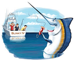 On Greatness and AgonyIllustration by Scott PollackThe sea was glass-calm. A mid-summer’s sun shone bright over cobalt waters that featured hints of purple. Our Blinky IV fishing team was trolling a 500-fathom contour line that lies about 65 miles offshore of Ocean City, Maryland. The scene was set for magic to