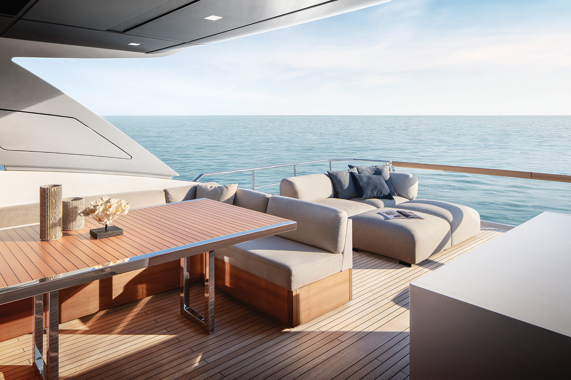 Look again. The exterior design of Sanlorenzo’s SL90A might seem to be standard-issue Italian conservative-chic, and it is. But concealed within its sleek yet sober styling, this yacht boasts a feature that makes it one of the most radical and forward-thinking vessels in its class. It doesn’t matter how close you get, you probably won’t notice it until you’re actually on board: there’s no port side deck.