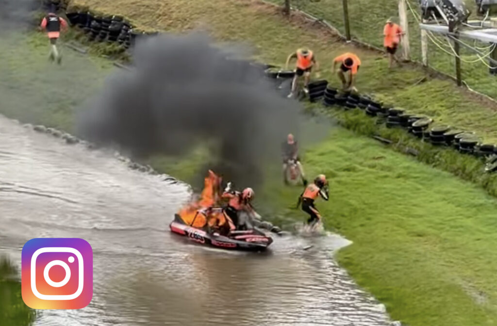This jetboat caught fire two turns before the end of the race, and what a fire it was. The response time of the safety crew here is beyond impressive, and it’s certainly good to know these guys are at the ready.