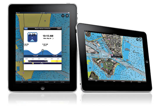 A week ago I was driving along the waterfront of a big American city with a yacht-broker friend of mine using an iPad with digital Navionics cartography that was conveniently secured to his SUV’s dash to show us how to get where we were going. Wow! Idling through back streets and parking lots, he was able to steer with one hand and rapidly whisk through topographic maps, marine cartography, and even relevant photography with the other. A small pulsating orb religiously kept tabs on our position. “You know,” he said at one point, “when somebody buys a new boat from me these days and they want to put in an extra plotter, I tell them [to consider buying] an iPad with Navionics [if] it’ll be out of the weather.”