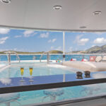 Both a cinema and a playroom occupy the sixth guest cabin space.