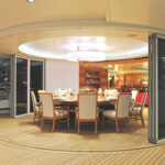 Lrssen describes her layout as “private,” with little in the way of vast, imposing spaces designed to overawe the impressionable and emphasize the yacht’s size. Instead, Madsummer has manageable living areas, based on a comfortable human scale. The main entrance for guests is via the main-deck lobby on the starboard side. Forward lie the four principal guest suites, plus the extra double en suite cabin; a sixth area is fitted out as a cinema and a playroom for the children. Turn left from the lobby, and you find yourself in the main saloon with its intimate seating areas, full-size bar, and twin circular eight-seat dining tables, which are intended to lend themselves equally to both casual and formal dining.