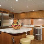 They went home the following week and immediately started looking into buying a Hargrave—a 76-footer, to be exact. The Frains didn’t want to make too big a jump up in size from their 65. “The next thing I know, I’m signing papers for a 98,” Tami says with a wide grin, standing in the main saloon of their brand-new Hargrave 98, called Tiger’s Eye. “As many boats as we’ve been on, I wouldn’t change a thing. This boat came out perfect.”