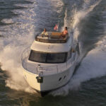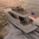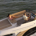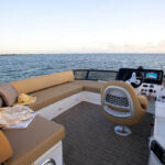 An aft sunpad and U-shaped settee make the flying bridge the place to be on the Carver C34.