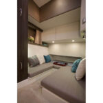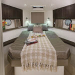 The guest stateroom has stowage and everything your company will need for a weekend aboard the Carver C34.