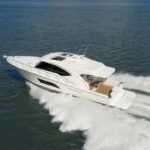 has a flying bridge with companion seating to help you enjoy those sea breezes.