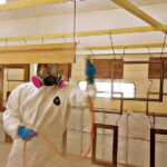 Tyvek suits and respirators protect workers so they can concentrate on getting a perfect finish.