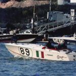 When designer Mike Peters first bought White Tornado from Cadillac McDaniel, he trailered it to his home and it felt like the boat weighed a ton. He would learn that the bilges and keel had been filled with hundreds of gallons of stagnant water. It was a labor of love for the designer to re-fiberglass her stringers.