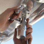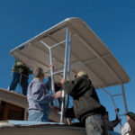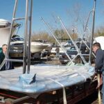 The last project before the TraveLift arrived was to install a hardtop; the Moshers chose one from Atlantic Towers in Bayville, New Jersey. Atlantic builds the top to fit the boat but leaves the legs long for on-site trimming to allow precise height adjustment. Installation involves only basic tools and skills, but it helps to have done it once or twice before, since there are a few tricks. The Moshers hired independent contractor Tom Lynch to install theirs.